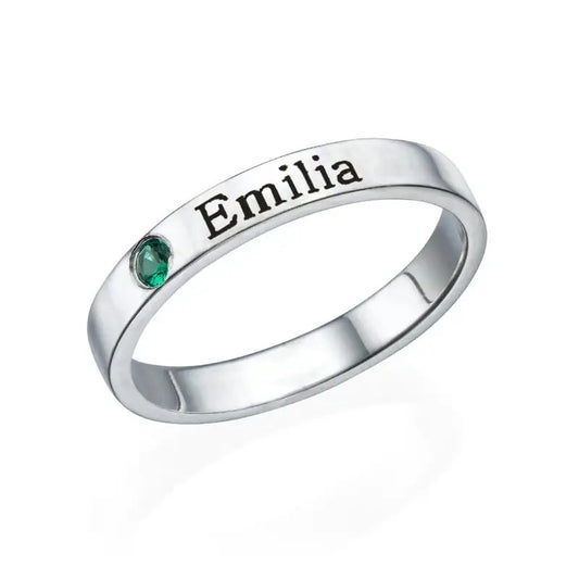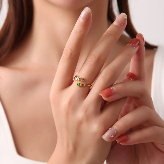 Adjustable Custom Name Ring With Birthstone