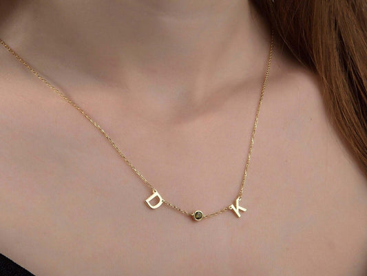 Sold outDouble Initial Birthstone Necklace