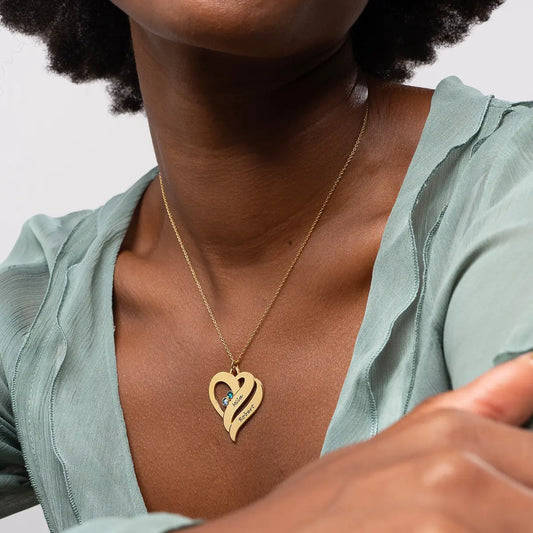 Sold outTwo Hearts Necklace with Birthstone