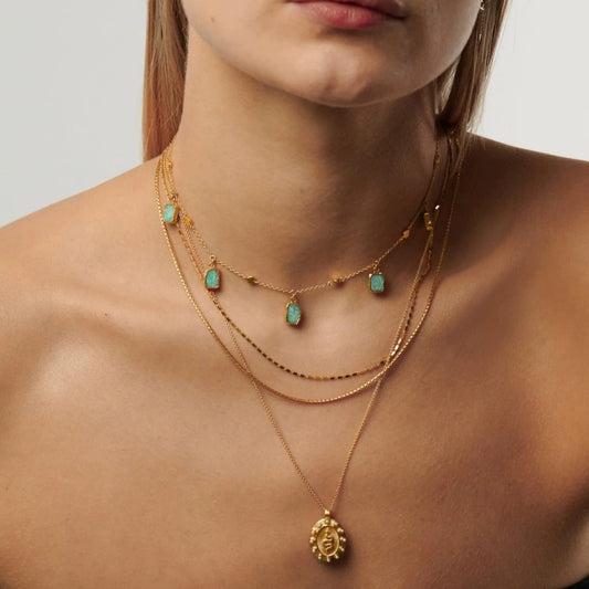 SQUARE SHELL PENDANT DOUBLE LAYER NECKLACE