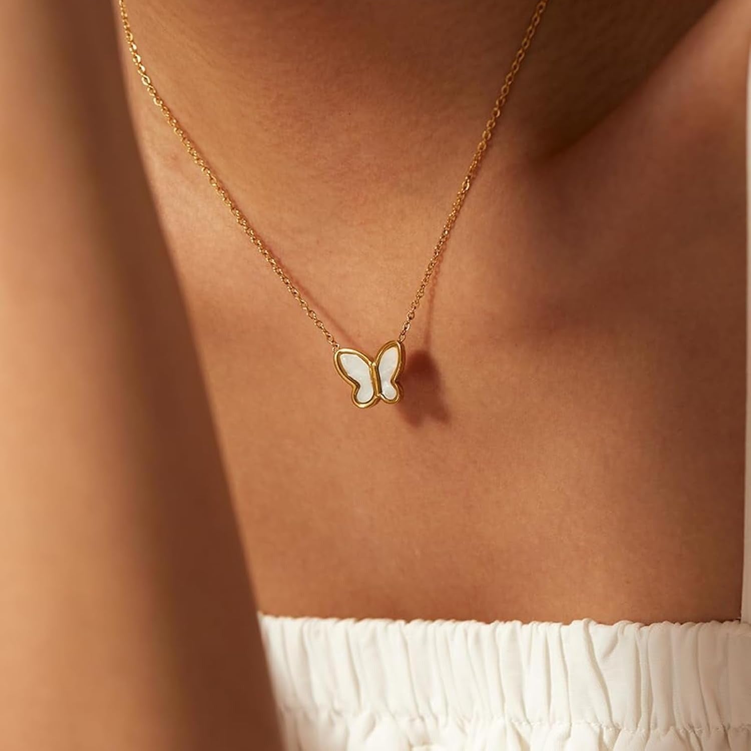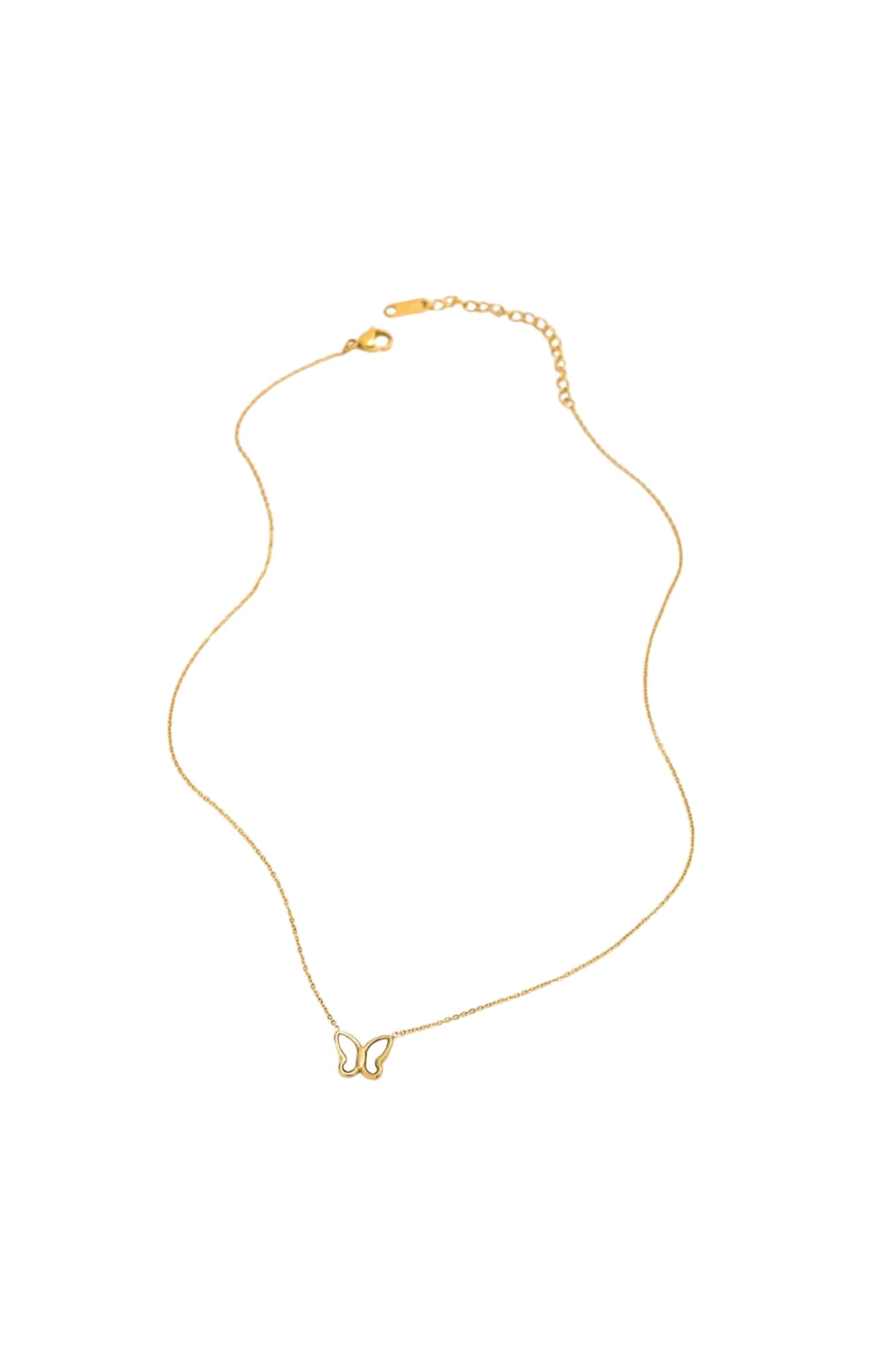 Add a touch of enchantment to your jewelry collection with our Butterfly Pendant Necklace. Inspired by nature’s delicate beauty, this stunning piece features a gold butterfly pendant adorned with mother-of-pearl inlay, creating a timeless and elegant design. Perfect for gifting or treating yourself, this necklace is a must-have for anyone who loves chic, meaningful accessories. 🦋✨