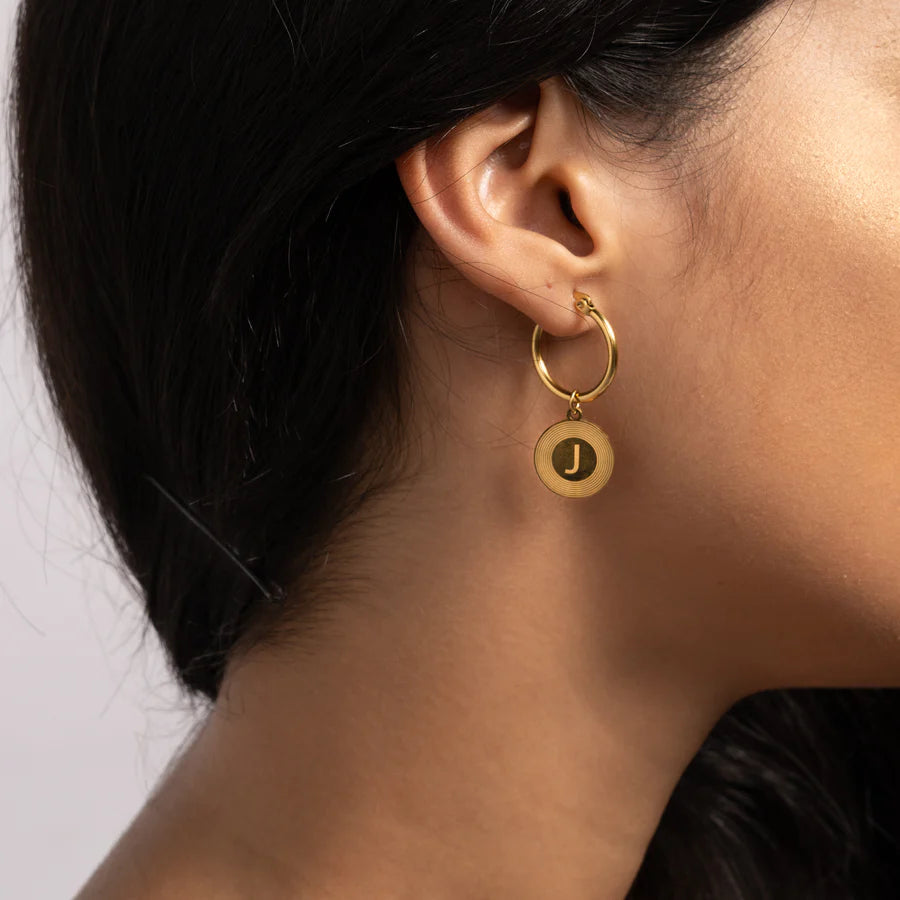 Inspired by the rising sun, these earrings are designed to capture and reflect light, bringing a subtle brilliance to your face. 🌞 The central initial adds a personal touch, while the surrounding sunburst pattern symbolizes energy, strength, and renewal.