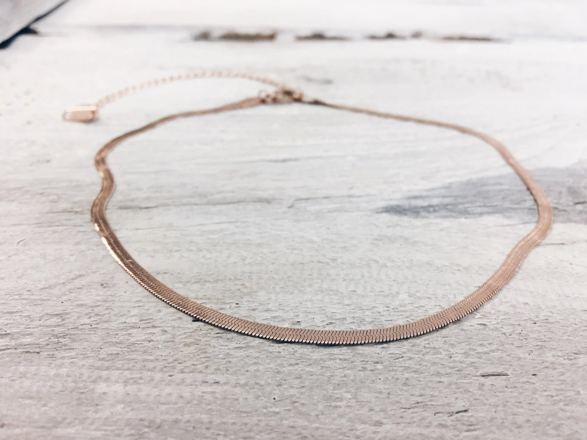 • A modern flat herringbone choker: (12"(30.5cm) + 2"(5cm) extension, 0.35 oz) 💎
