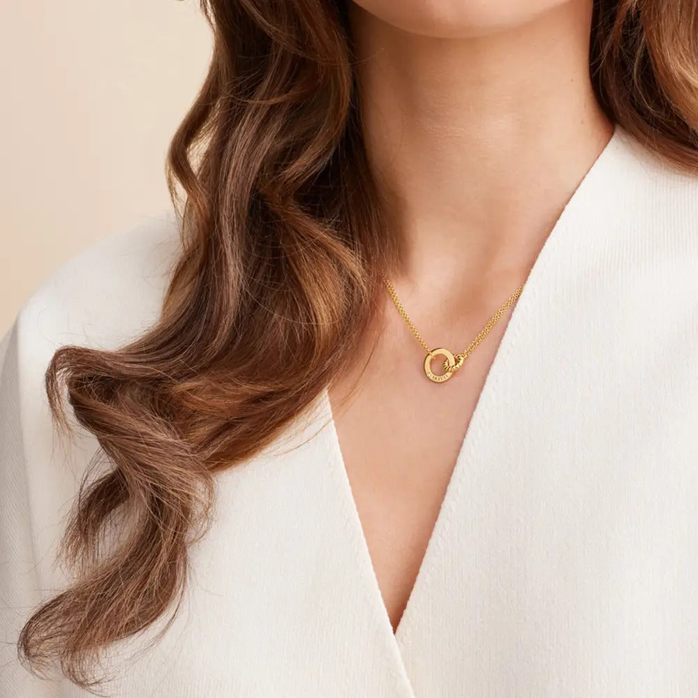 • Interlocking Design: Crafted in luxurious 18K gold plating, the interlocking circles symbolize the unbreakable bonds we share with loved ones.