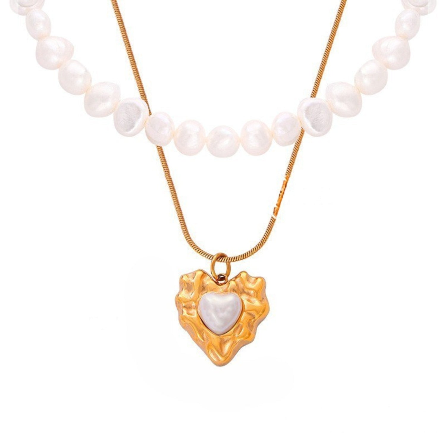 Natrual Pearl Heart Pendant With Layered Pearl Necklace