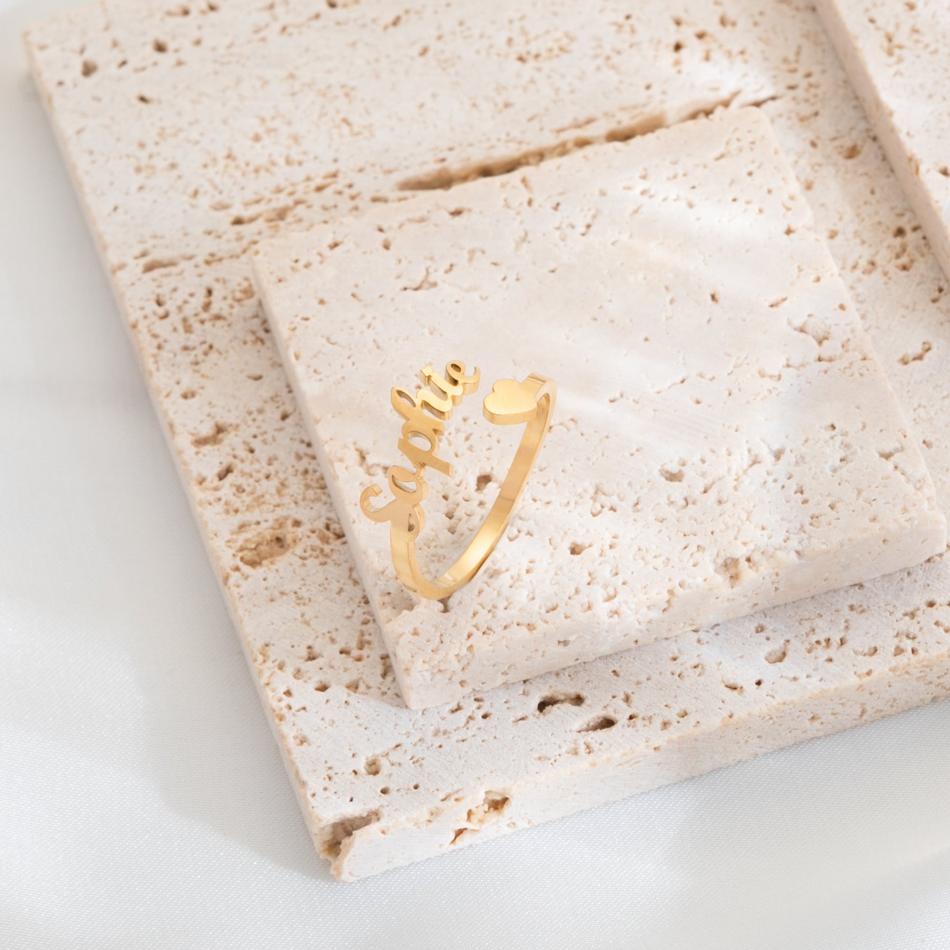 Discover the perfect blend of uniqueness and personalization with our Open-Ended Ring available in Gold, Silver, or Rose Gold finishes. Personalize it with the name, word, or date of your choice to create a truly custom piece of jewelry. This open-ended design ensures a comfortable fit for all finger sizes and features a charming heart cutout at the end, adding a touch of love to this special accessory. ❤️