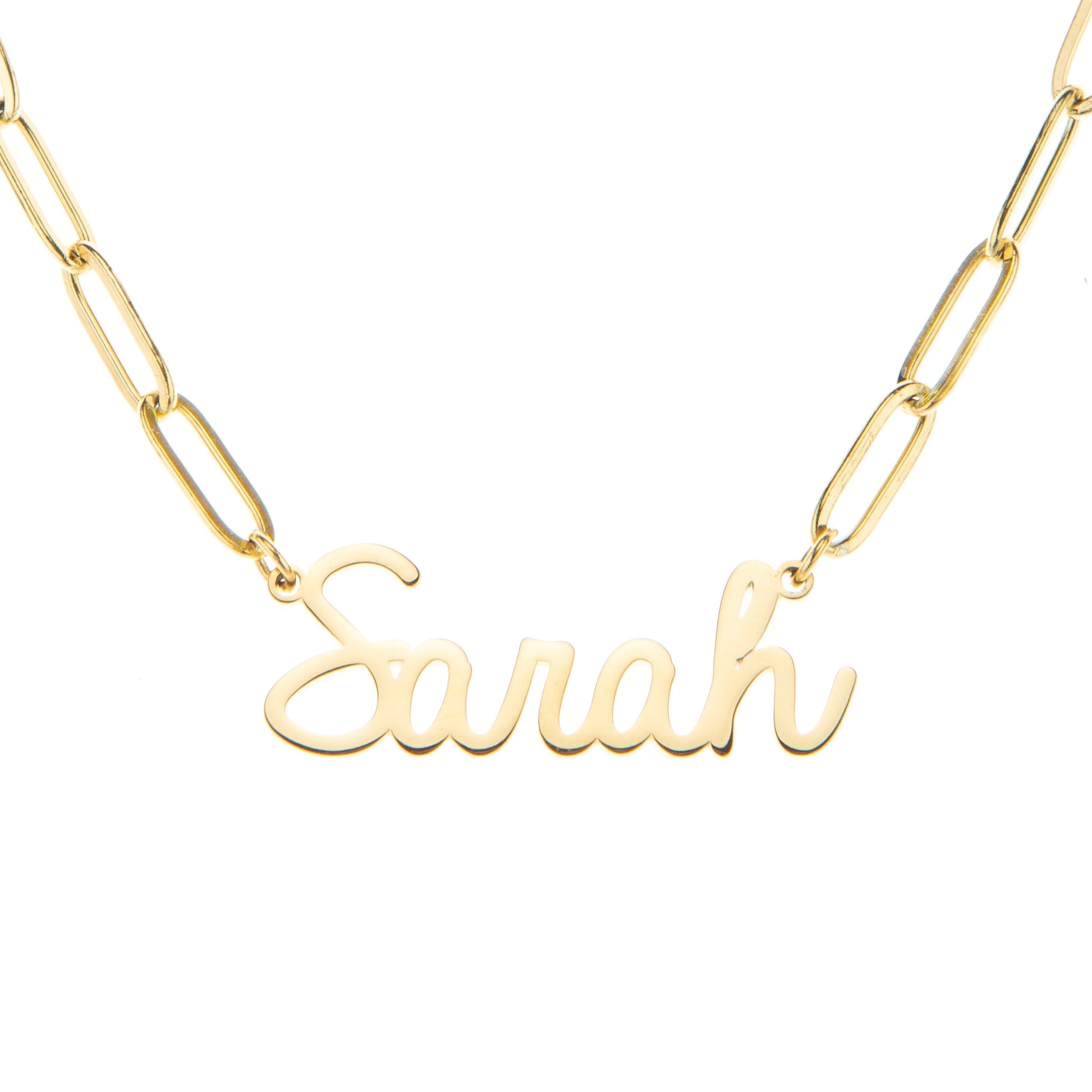 Introducing our latest piece featuring a stunning paperclip chain that beautifully complements a uniquely designed name pendant in a captivating Script font—it’s sure to make your heart melt! 💖