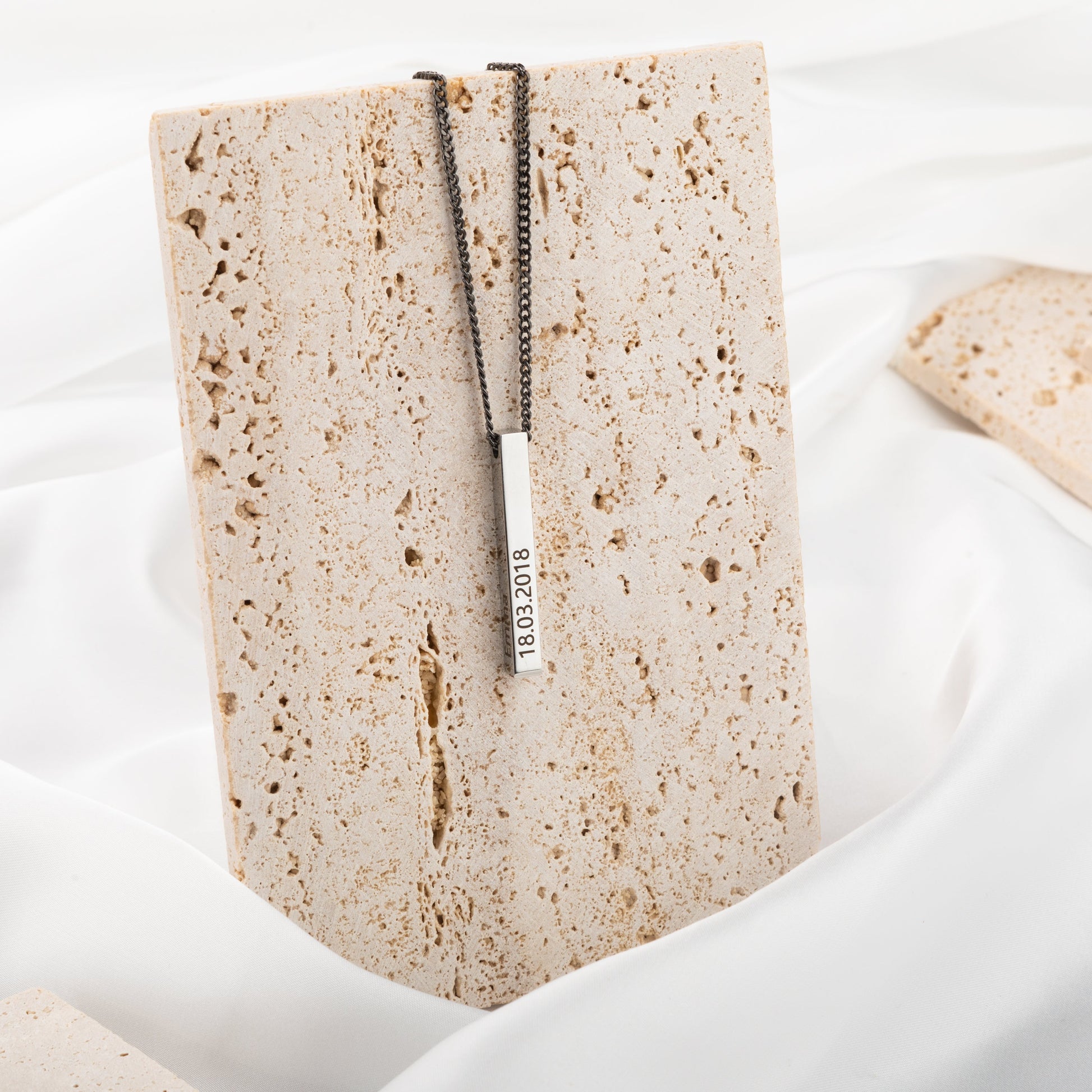 Personalized Men Pillaer Bar Pendant Necklace in Silver